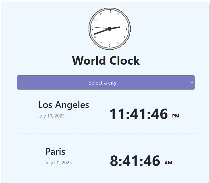 This is my shecodes plus project I completed for shecodes. html, css, javascript, bootstrap, API, hosting, Github used here.World Clock ⌚